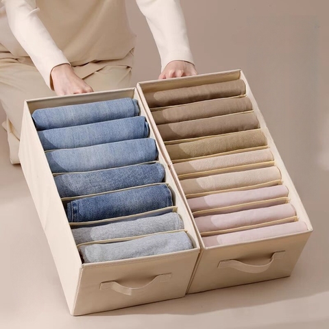 Scatola di immagazzinaggio dei pantaloni per vestiti con scomparti organizzatore magico per il guardaroba domestico scatola di immagazzinaggio a strati di jeans per la custodia